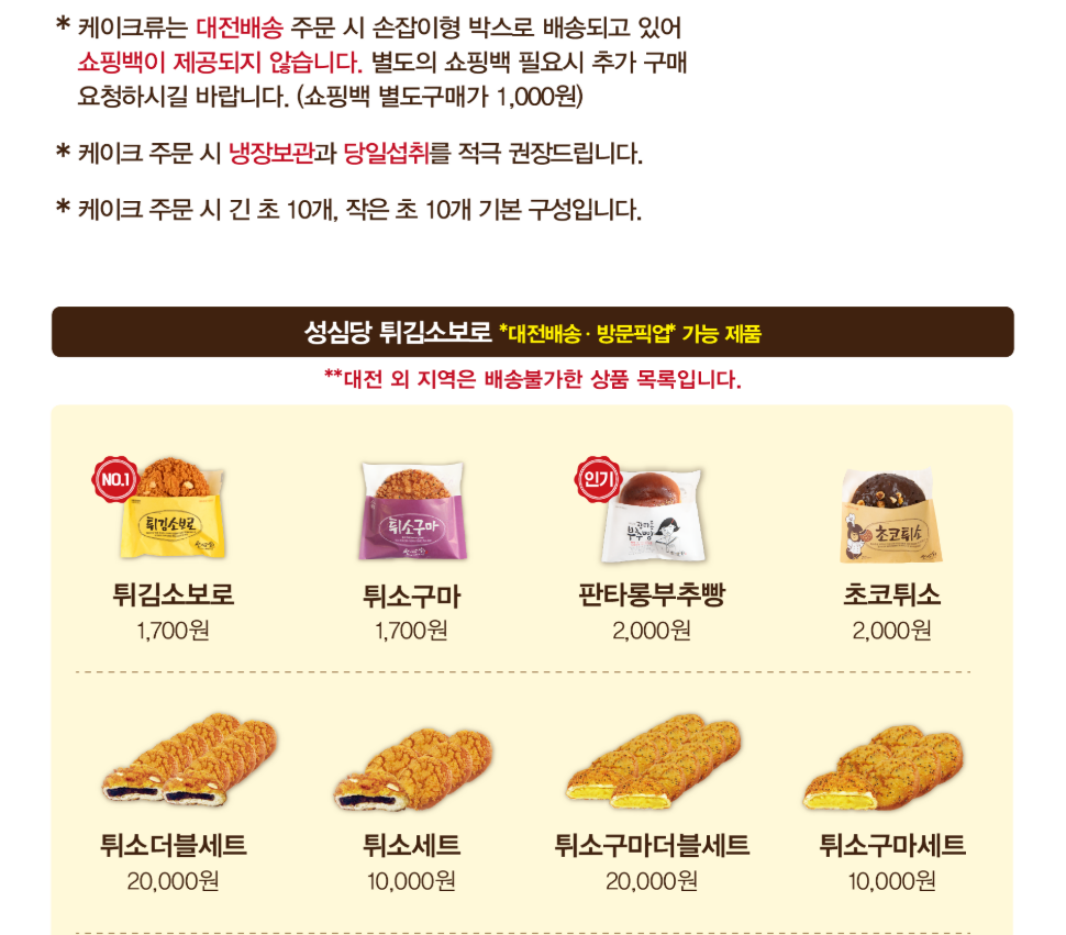 성심당 기존의 케이크는 12월 18일까지 판매합니다. 판매 목록은 다음과 같으며 자세한 내용은 성심당 홈페이지를 참고해주세요.